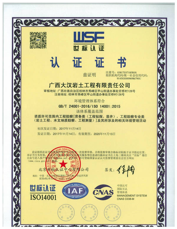 2017年(nián)1114日,公司通過質量管理(lǐ)ISO 9001、環境管理(lǐ)ISO 14001職業健康管理(lǐ)體系OHSAS18001體系認證并取得認證證書。公司各部門、各工作環節依照質量環境職業健康管理(lǐ)體系标準化流程作業,逐步完善各項制度,向更高(gāo)高(gāo)台階不斷努力。