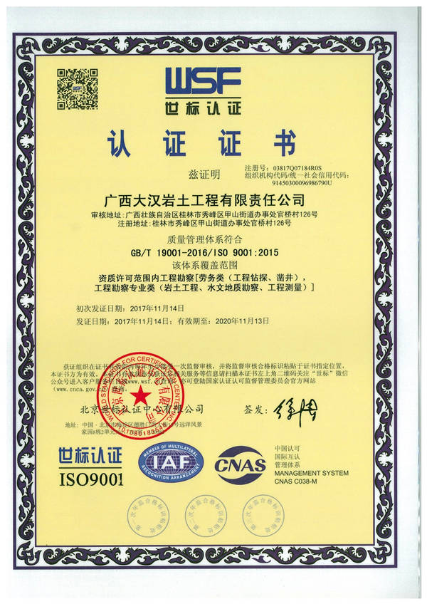 公司通過質量管理(lǐ)ISO 9001、環境管理(lǐ)ISO 14001、職業健康管理(lǐ)體系OHSAS18001體系認證