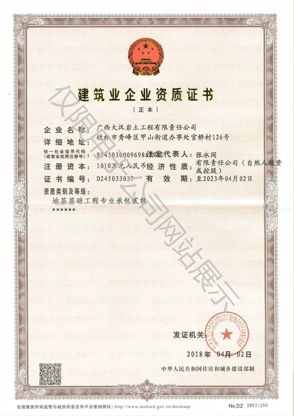 2018年(nián)4月2日,公司取得建築業企業資質證書地(dì)基基礎工程專業承包貮級,在建築施工方面再次跨出長(cháng)足的(de)一(yī)步。